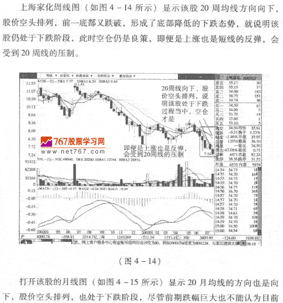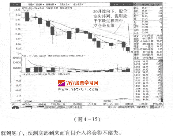 20日周线和月线同时向下就说明股票处于下跌阶段,此时最好是空仓操作,底部没有明显抬高以前不要预测是否见底,是否到了反转点,盲目抄底是不明智的,不要企图比市场聪明. |